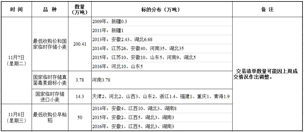 11月7-8日国家政策性粮食竞价销售交易公告